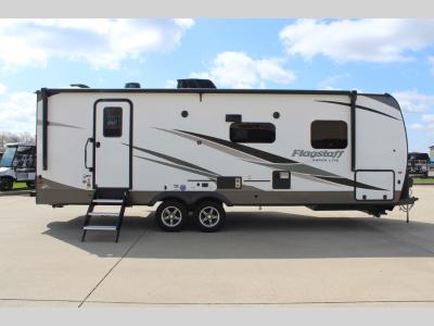 With any Flagstaff Super Lite travel trailer by Forest River, you can enjoy quality features with lightweight towing! The Climate Protection Package includes radiant foil in the front cap, underbelly, and slides, plus there are 12V thermostat-controlled heated tanks for added protection. The complete composite wall construction and 6-sided full-aluminum frame is ultra durable, and the RoadTech tire pressure monitoring adds safety. Each model also includes the Coast to Coast Package that comes with slam latch baggage doors, a high gloss fiberglass cap, Goodyear Endurance tires, plus a 200W solar panel with an optional additional 200W panel for more off grid capabilities. Inside, you'll love the roller shades, solid surface kitchen countertops, a shower miser system, and many more comforts!