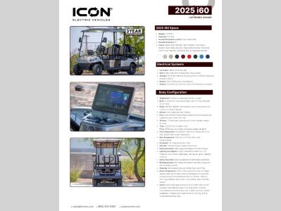 Stock #A0129628SpringfieldThe legendary ICON i60L golf cart is the pinnacle of practicality and style!Stock #A0129628SpringfieldThe legendary ICON i60L golf cart is the pinnacle of practicality and style!